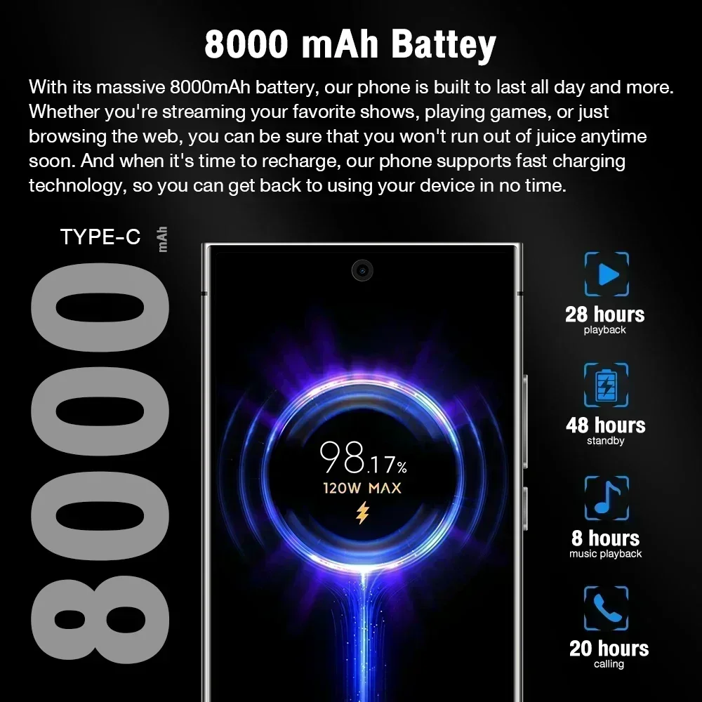 With its massive 8000mAh battery, our phone is built to last all day and more. Whether you’re streaming your favorite shows, playing games, or just browsing the web, you can be sure that you won’t run out of juice anytime soon. And when it’s time to recharge, our phone supports fast charging technology, so you can get back to using your device in no time.